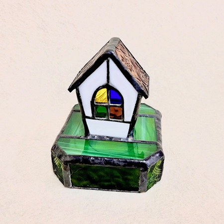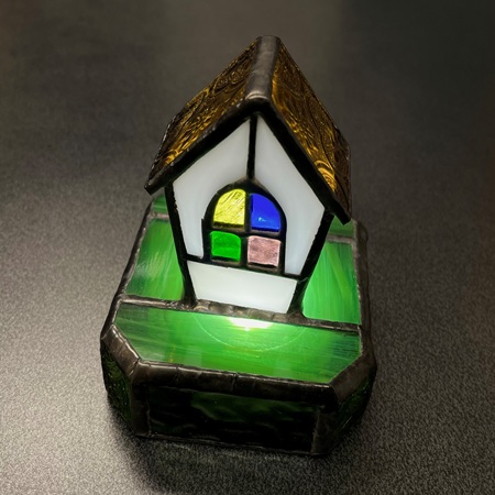 | コメント | ステンドグラスでおうちの置き型ライトをつくります。小さな窓のガラスパーツはカラフルで可愛いです♡土台の中にライトを置いておうちの中を点灯します。優しい光でお部屋の雰囲気が素敵になりますよ♪それぞれのガラスパーツに銅のテープを巻き、はんだ付けして仕上げます。