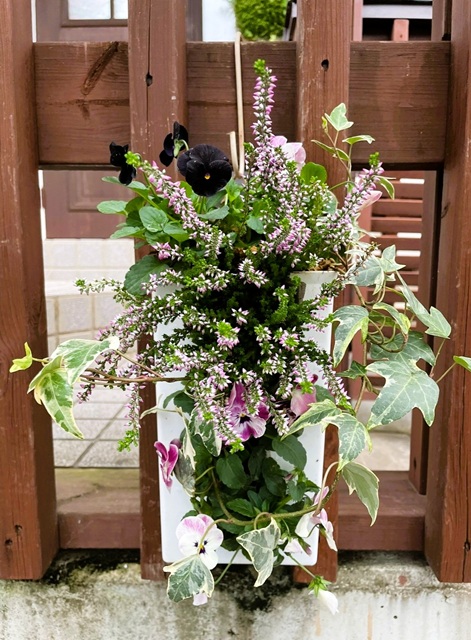 コメント | 秋のガーデニング!寒い季節を彩る、おしゃれな屋外用ミニハンギングバスケットです。長方形の容器の上部やスリットに花苗を入れていきます。玄関先やバルコニーなどを華やかに彩りましょう!